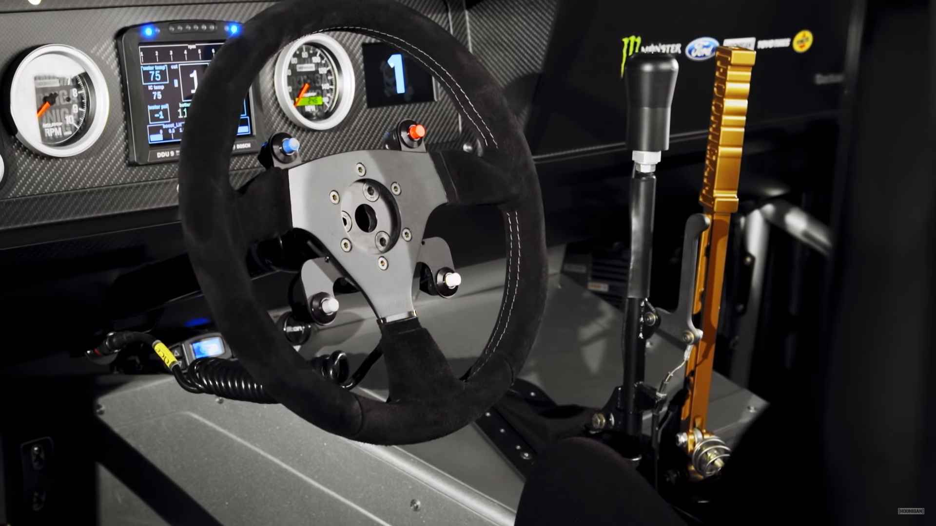Најновиот додаток во колекцијата е штотуку тјунираниот F-150, подготвен за дрифт. Станува збор за автомобил од 1977 година, а погонската единица доаѓа од Ford GT. Пикапот на Блок користи twin turbo V6 мотор, кој, по детална обработка, сега испорачува цели 914 КС. Оваа дрифт машина има и интегрален погон.