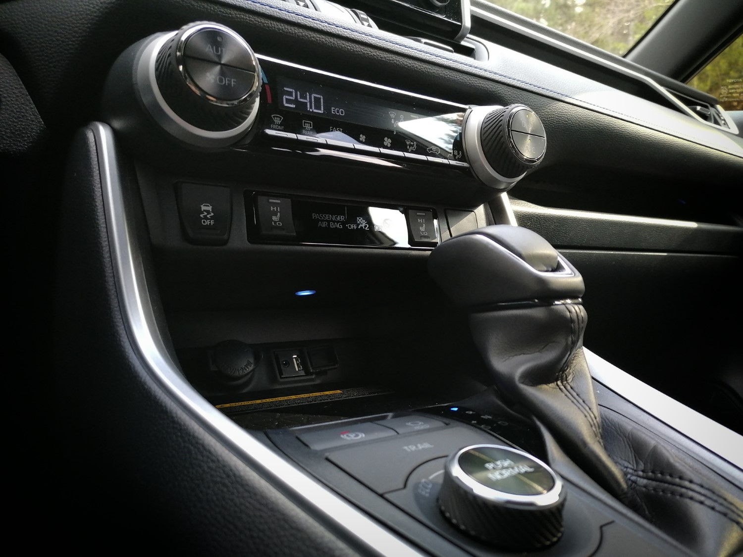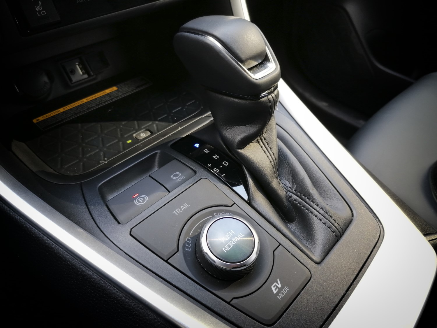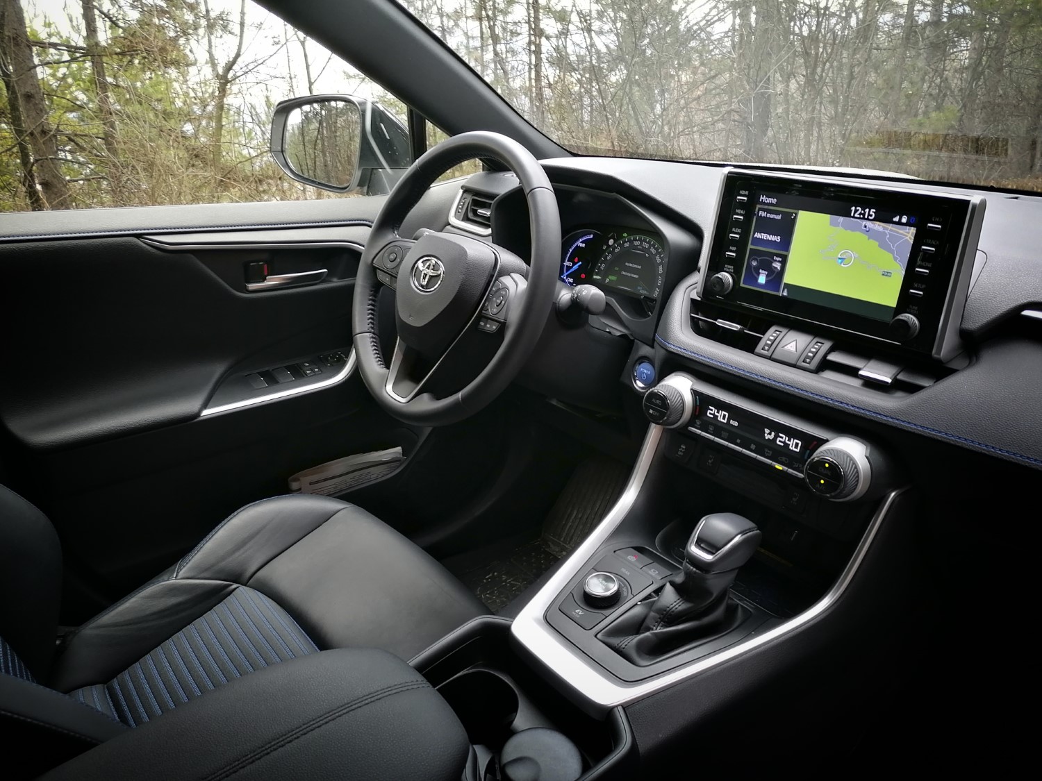 За време на сопирањето, кинетичката енергија се претвора во електрична енергија, така што на RAV4 никогаш не му е потребно надворешно дополнување на батеријата. За да може да се комбинираат бензинскиот и електромоторот (при стартување на автомобилот се вклучува само електричниот дел од погонот), во Toyota се одлучиле за т.н. континуиран променлив пренос (автоматски менувач CVT). Како резултат, одговорот на педалот за гас понекогаш е малку индиректен и понекогаш при забрзување може да се појави пригушен звук. Но тоа е повеќе работа на навика.